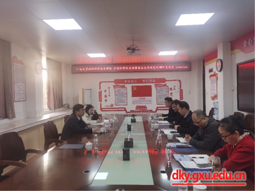 1月12日,中国科学院亚热带农业生态研究所陈洪松所长一行到beats365Welcome to-beats365(中国区)-唯一官方网站调研交流。Welcome to-beats365(中国区)-唯一官方网站院长陆阳清,副院长韦祖樟、蒋钦杨,动物医学系主任陈樱,动物科学系主任李辉,以及部分教师代表参加座谈会。座谈会由陆阳清主持。